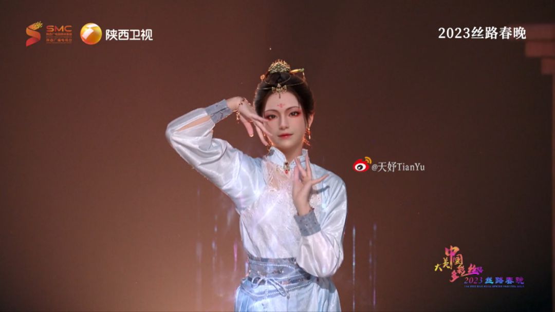 “這青瓷之青,果然國(guó)色?!薄拔覍⑷∵@抹青而去,重修壁畫(huà)!”伴隨著音樂(lè)聲漸漸落下,天妤著一襲海天碧色國(guó)風(fēng)服飾,手捧耀州青瓷的形象慢慢定格。大年初一晚,天妤亮相“大美中國(guó)·多彩