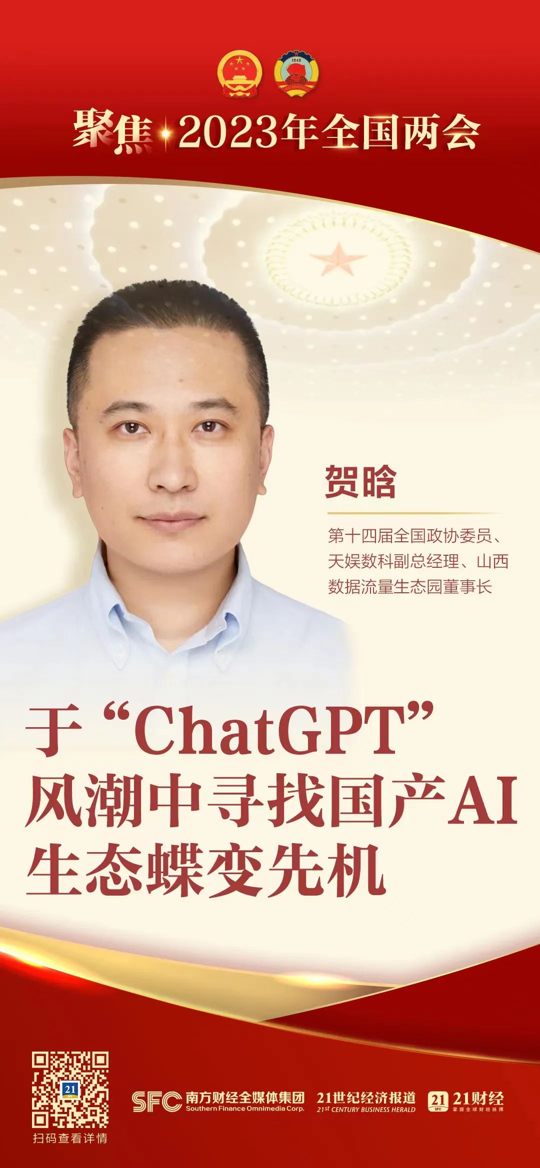 21世紀(jì)經(jīng)濟(jì)報(bào)道 兩會(huì)專(zhuān)題專(zhuān)訪報(bào)道2月13日,21世紀(jì)經(jīng)濟(jì)報(bào)道“聚焦 | 2023年兩會(huì)”專(zhuān)欄對(duì)第十四屆全國(guó)政協(xié)委員、天娛數(shù)科副總經(jīng)理賀晗進(jìn)行專(zhuān)訪。作為數(shù)字經(jīng)濟(jì)領(lǐng)域的委員,生于198