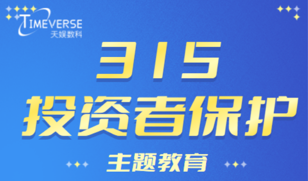 315投資者保護(hù)主題教育為切實(shí)做好投資者合法權(quán)益保護(hù)工作,助力資本市場(chǎng)平穩(wěn)健康發(fā)展,在2023年主題為“全面注冊(cè)制 改革向未來(lái)”的3·15投資者保護(hù)活動(dòng)來(lái)臨之際,天娛數(shù)科特別推