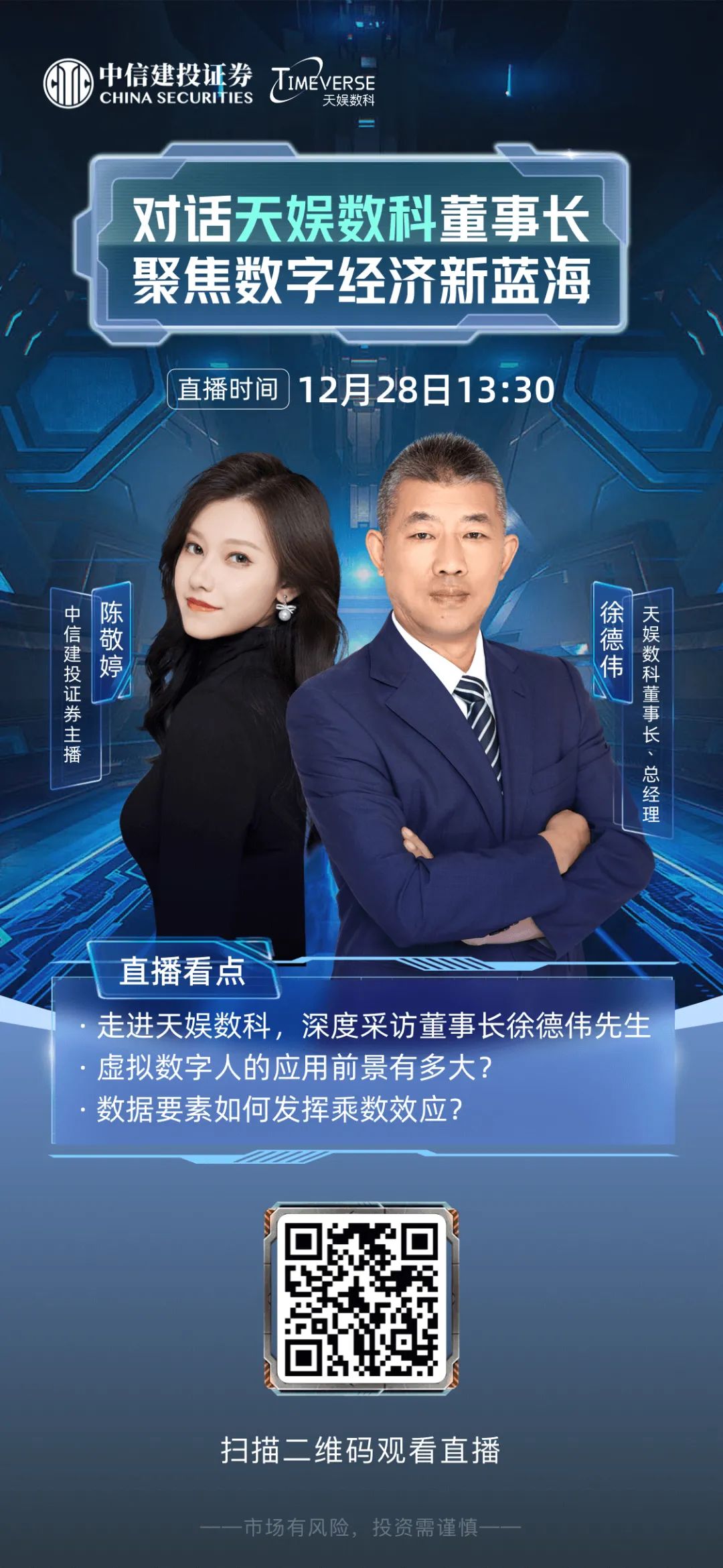 11月22日,中信建投證券北京東城分公司一行來(lái)到天娛數(shù)科數(shù)字人基地走訪調(diào)研,天娛數(shù)科董事會(huì)秘書(shū)劉笛、天娛數(shù)科子公司元境科技CEO王智武、天娛數(shù)科子公司元圓科技總經(jīng)理鄭屹呈