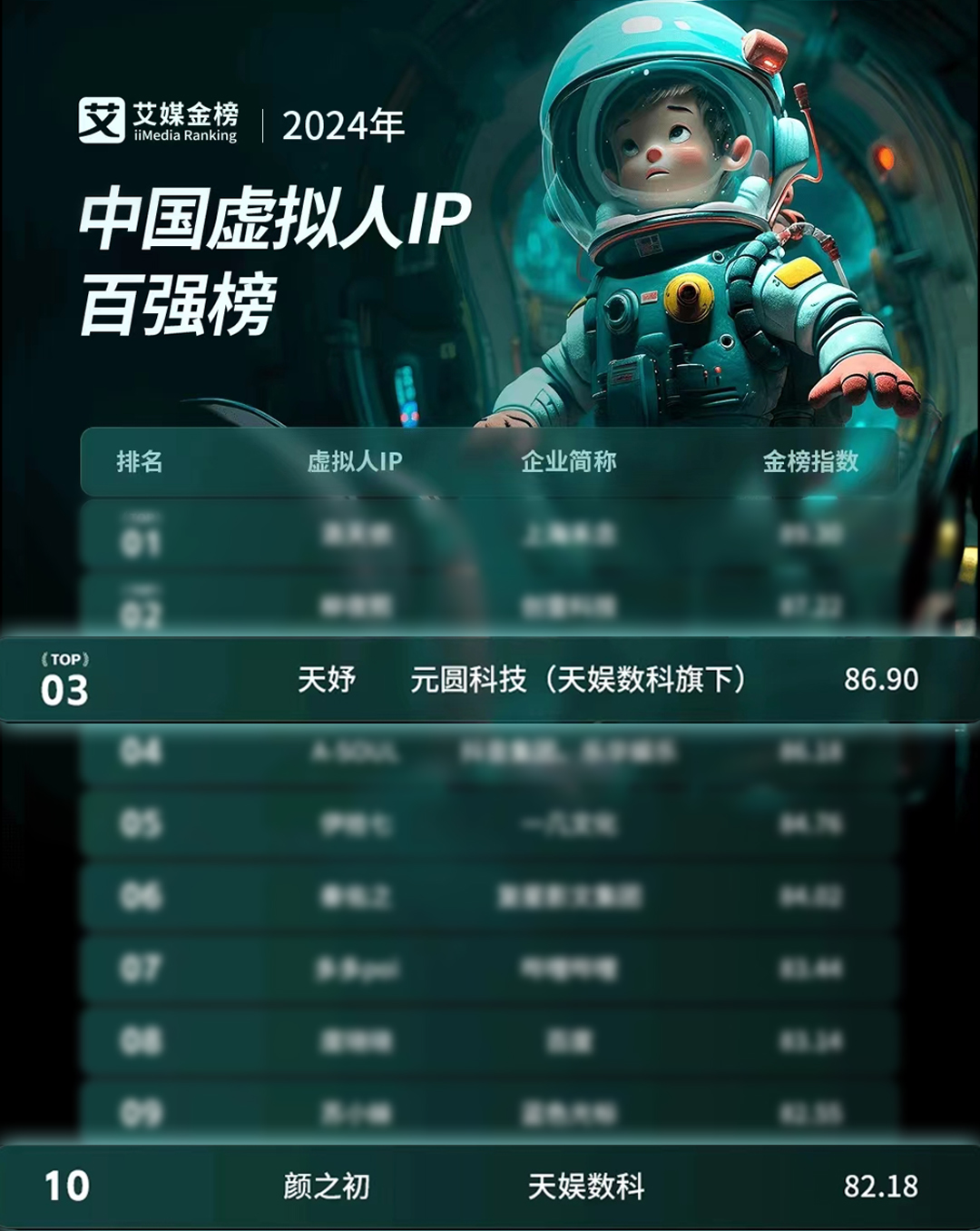 日前,全球新經(jīng)濟(jì)產(chǎn)業(yè)第三方數(shù)據(jù)挖掘和分析機(jī)構(gòu)iiMedia Research(艾媒咨詢)發(fā)布《2024年中國(guó)虛擬人IP百?gòu)?qiáng)榜》,天娛數(shù)科子公司元圓科技旗下虛擬數(shù)字人天妤、顏之初雙雙進(jìn)入榜單To